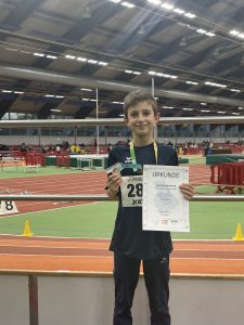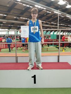 Am zweiten Meisterschaftswochenende des neuen Jahres standen die Regionsmeisterschaften der Altersklasse U14 und U16 auf dem Programm. Und in der Leichtathletikhalle des Arena Sportparks in Düsseldorf startete einer der sechs TSVer mit einem Paukenschlag in den Tag. Marc Vathauer verbesserte sich im Kugelstoßen der M13 um einen halben Meter und holte sich die Goldmedaille mit 9,58 Metern. Mit 8,70 Sekunden über 60 Meter qualifizierte er sich für das Finale. Zeitgleich mit dem Zweitplatzierten in 8,63 Sekunden ins Ziel kommend, aber mit neun Tausendstel Rückstand, holte er sich hier Bronze. Die dritte Medaille des Tages sicherte sich Florian Milosev über 800 Meter der M12. In einem couragierten Rennen holte er sich in 2:40,56 Minuten die Vizemeisterschaft. Ebenso verkaufte sich Viktoria Block über 60 Meter Hürden gut. Sie touchierte leider eine Hürde und kam dabei aus dem Rhythmus. In 12,32 Sekunden kam sie auf Rang fünfzehn der W13. In der M14 stießen Noah Morsbach und Jan Vathauer erstmals mit der vier Kilogramm schweren Kugel. Das gelang beiden gut. Noah Morsbach wurde Fünfter mit 8,76 Meter vor Jan Vathauer, der mit 8,40 Metern Rang sieben belegte. Noah Morsbach qualifizierte sich mit 8,66 Sekunden im Vorlauf für das Finale. Hier sprang Rang acht mit 8,70 Sekunden heraus. Erik Dorr kam im Kugelstoßen als Neunter der M15 auf 6,35 Meter.