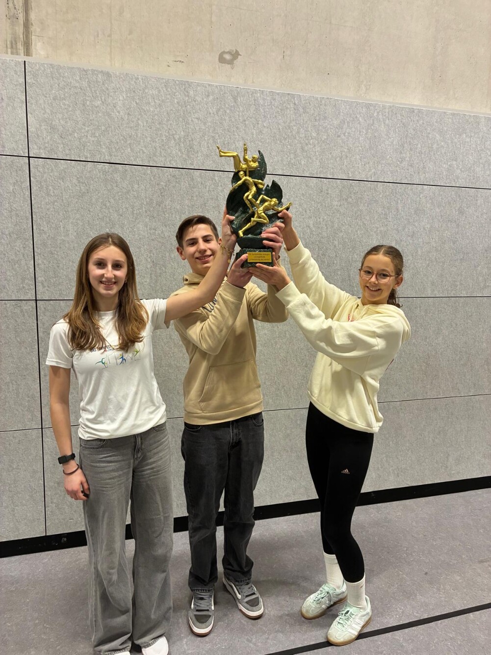 Beim alljährlichen TSV-Jahresabschluß mit Familientraining unter dem Motto „Olympische Sommerspiele“ mit mehr als einhundert Teilnehmern in der Sporthalle Zweigstraße wurden zuletzt auch einige Ehrungen vorgenommen. Erstmals wurde ein neuer Wanderpokal ausgelobt. Für die beste „Entwicklung des Jahres“ wurden Viktoria Block, Frieda Milosev und Noah Morsbach geehrt, die stolz den schweren Gußpokal zeigten.