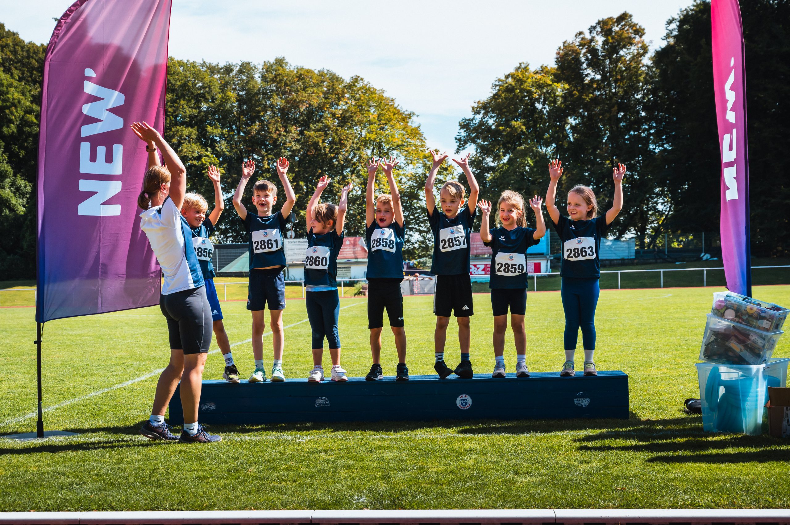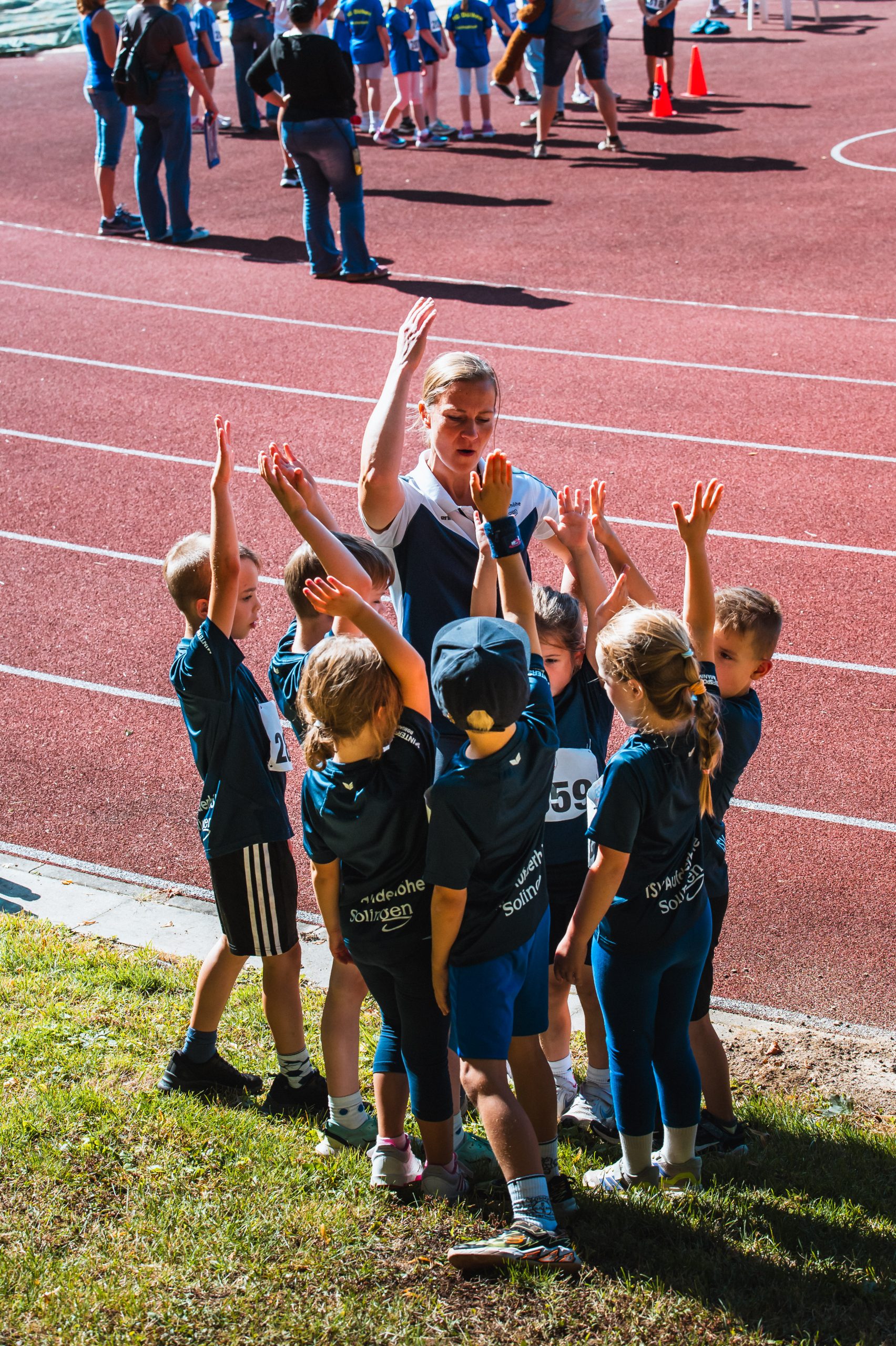 Stimmungsvoll laufen immer wieder die Kinder-Leichathletik-Sportfeste (KiLa) ab. So auch dieses Mal in Viersen, wo der jüngste TSV-Nachwuchs mit einer U8 Mannschaft teilnahm. In den vier Disziplinen Hindernissprint-Staffel, Hoch-Weitsprung, beidarmiger Stoß und einer Biathlon-Staffel tummelten sich Nele Granich, Luise Jansen, Lio Schneider, Anton Schulheis, Marlo Steffens, Pauline Ströker und Karl Vierneisel. Besonders in der Biathlon-Staffel zeigte das TSV-Team um Trainer Jessica Lauer-Marggraf, das sie gut kämpfen kann. Am Ende teilten sich die Blau-Weißen den ersten Platz mit jeweils sechs Wertungspunkten mit der gastgebenden LG Viersen.
